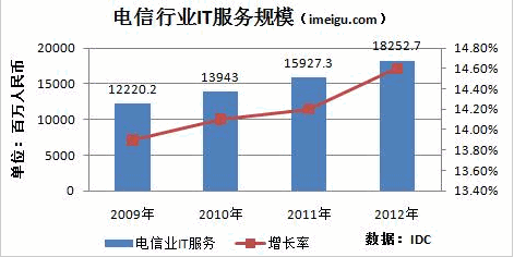 據IDC統計,中國電信(CHA,51.08,+0.79%)行業(yè)IT規(guī)模從2009年的122億元增長到2012年的182億元;復合增長率14.5%。