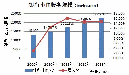 IDC的統計數據還顯示,銀行業(yè)IT服務市場規(guī)模將從2009年的131億元增長到225億元;實現14.5%的復合增長。