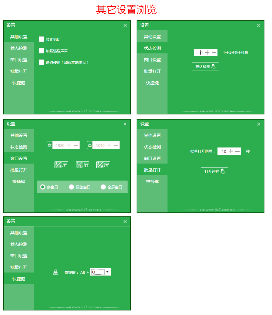 3、為了讓界面更美觀,將分辨率、狀態(tài)檢測、批量開啟間隔等統(tǒng)一在“其他設(shè)置按鈕”中。