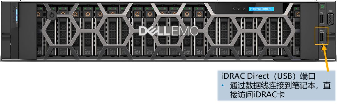 運維人員只需攜帶一根數(shù)據(jù)線連接前面板USB管理口,無需插拔任何其他線纜,即可直接與Web界面、WSMan等iDRAC界面交互,實現(xiàn)管理和維護功能,方便安全(此功能免費)。