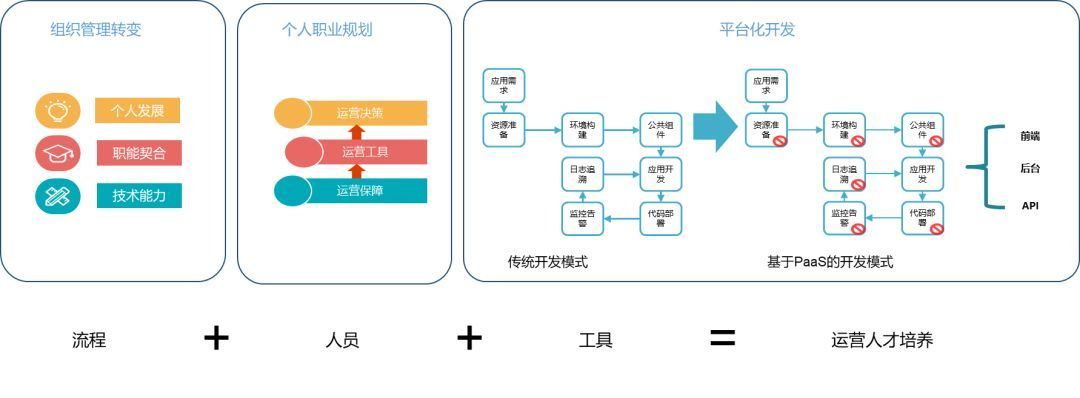 運(yùn)維組織轉(zhuǎn)型的三個(gè)維度:流程、個(gè)人職業(yè)規(guī)劃和工具平臺(tái)。