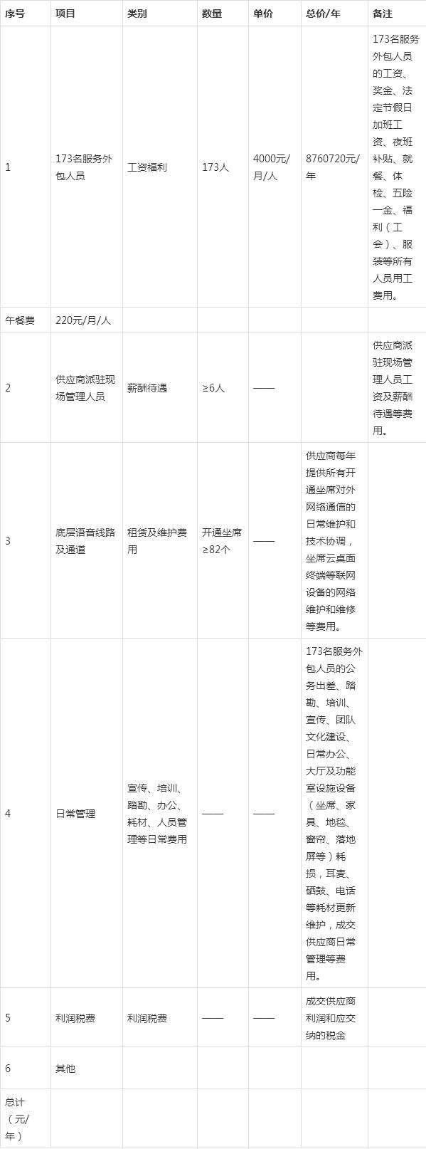 3.1 每個(gè)崗位人員數(shù)量:交易供應(yīng)商會(huì)根據(jù)現(xiàn)場(chǎng)實(shí)際情況,結(jié)合各種輔助管理崗位(質(zhì)檢、培訓(xùn)、知識(shí)庫、大數(shù)據(jù)、技術(shù)支持、人力資源、多媒體策劃、后勤保障等)根據(jù)主叫行業(yè)要求,參照主叫行業(yè)標(biāo)準(zhǔn)進(jìn)行整體配置。