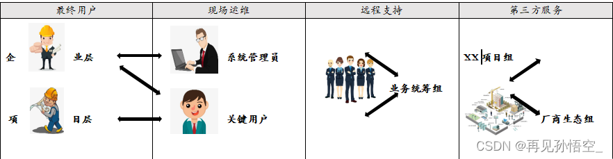 項(xiàng)目組由公司領(lǐng)導(dǎo)領(lǐng)導(dǎo)成立項(xiàng)目領(lǐng)導(dǎo)小組,領(lǐng)導(dǎo)小組下設(shè)項(xiàng)目組。項(xiàng)目團(tuán)隊(duì)分為業(yè)務(wù)規(guī)劃團(tuán)隊(duì)、信息中心團(tuán)隊(duì)和供應(yīng)商生態(tài)系統(tǒng)團(tuán)隊(duì)。每個(gè)團(tuán)隊(duì)都由業(yè)務(wù)專家和服務(wù)提供商組成。 ,各二級(jí)單位和各下屬子公司成立自己的運(yùn)維團(tuán)隊(duì)。運(yùn)維團(tuán)隊(duì)分為業(yè)務(wù)支持團(tuán)隊(duì)和信息支持團(tuán)隊(duì),分別負(fù)責(zé)業(yè)務(wù)支持和權(quán)限支持