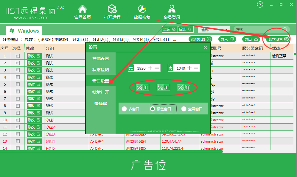4、如何修改窗口大小的例子服務(wù)器運(yùn)維技術(shù),舊版本名稱為分辨率設(shè)置,新版本窗口設(shè)置更方便,點(diǎn)擊“其他設(shè)置-窗口設(shè)置-選擇屏幕大小-打開選擇服務(wù)器”來獲得效果。與舊版本相比,無需選擇屏幕大小。您還可以自定義寬度和高度!